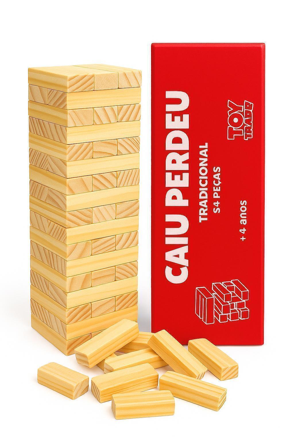 O Caiu Perdeu Tradicional da Toy Trade é um clássico jogo de equilíbrio e habilidade que desafia os jogadores a remover e reposicionar blocos de madeira sem derrubar a torre. Produzido em madeira pinus natural, combina resistência, acabamento de qualidade e uma experiência divertida que estimula a concentração e a coordenação motora.