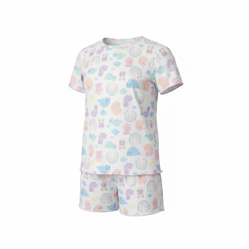 O Pijama Infantil Curto de verão é perfeito para as noites de sono! Confeccionado em tecido leve e macio, garante conforto e frescor para o sono das crianças, combinando praticidade e estilo em um visual superfofo e divertido.
